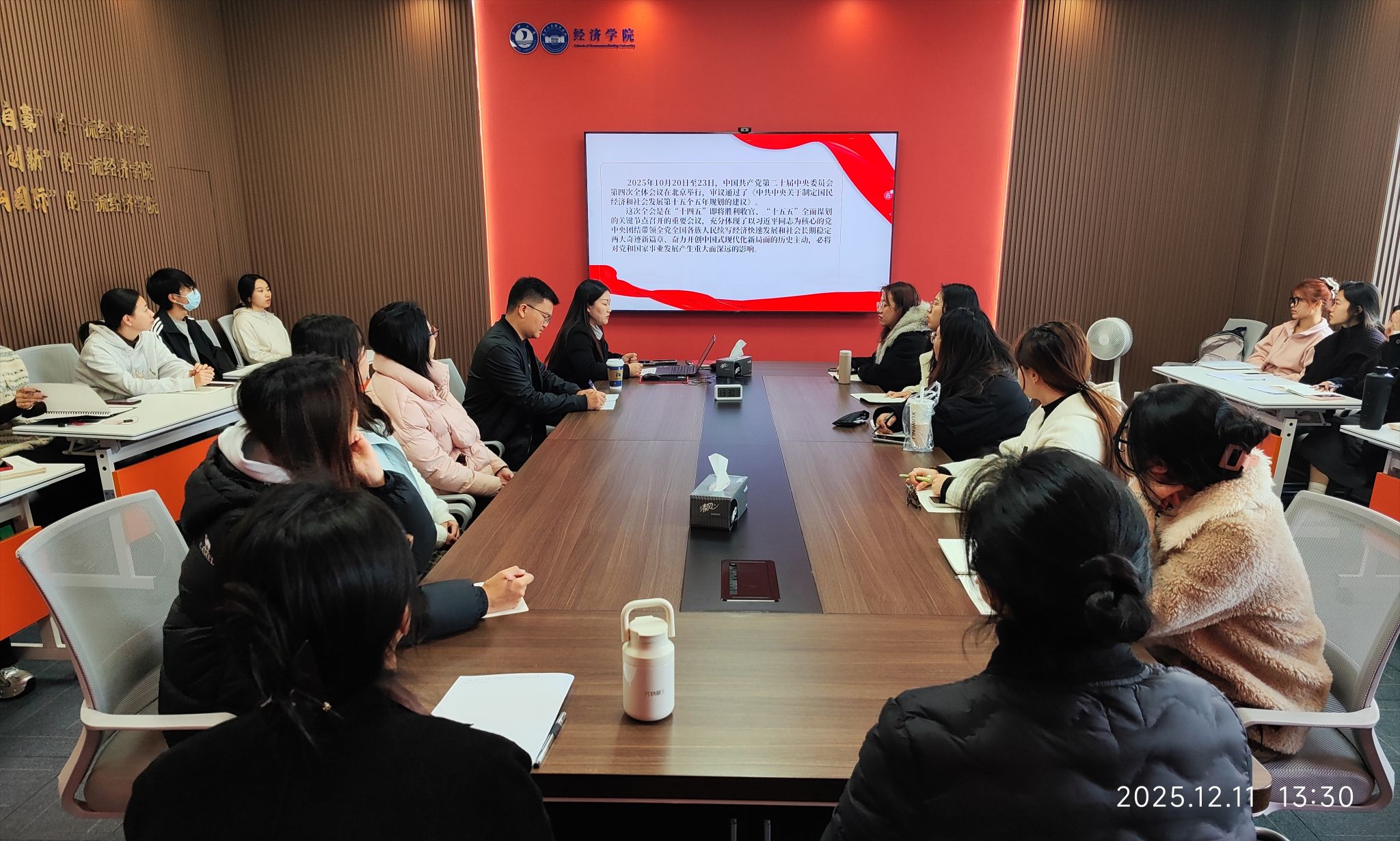 12月11日下午13:30,经济学院在尚德楼268会议室召开学习贯彻党的二十届四中全会精神专题宣讲会。学院党委书记蔡运男作宣讲报告,各学生和教师党支部党员代表参会,共同感悟全会精神内核,凝聚奋进发展力量。